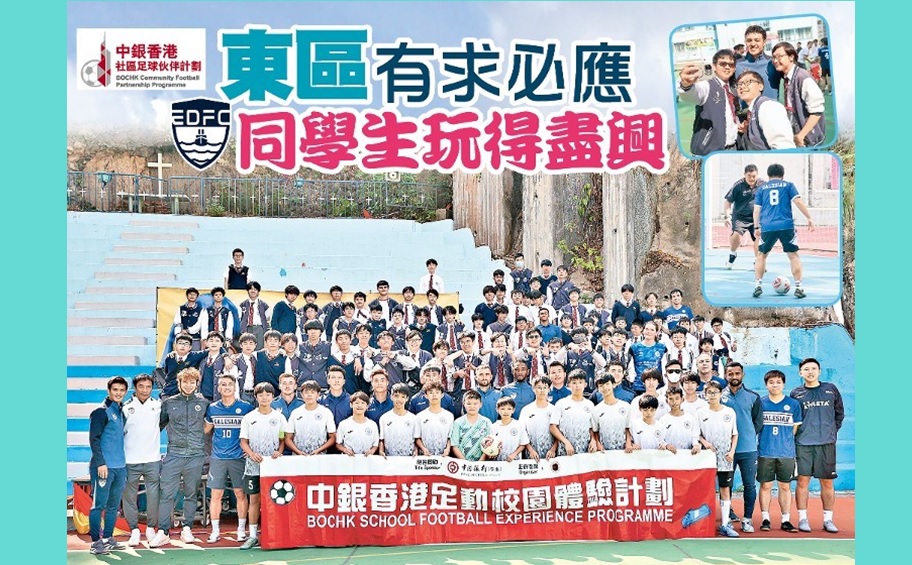 新一季「中銀香港足動校園體驗計劃」於上月24日正式展開,首擊有理文到訪位於將軍澳寶林的張沛松紀念中學,由助教羅志焜率領4位球員,包括中場巴拉克、後衞立花稜也、潘沛軒及翁煦濤,與逾80名中四學生進行足球交流。後衞翁煦濤就希望藉此激發學生興趣,鼓勵有意成為職業球員的學生勇敢追夢。 是日下午於學校露...