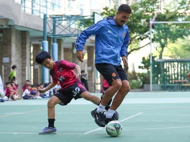 「中银香港足动校园体验计划」于上月26日轮到地区球队九龙城登场,到访位于何文田的陈瑞祺(喇沙)小学,教练唐咖名与5位球员,包括门将袁皓俊、后卫曾锦涛、余沛康、巴西前锋卡朗及雷仙奴,走入校园与逾40名小学生享受足球乐,为本地青训播下传承种子。