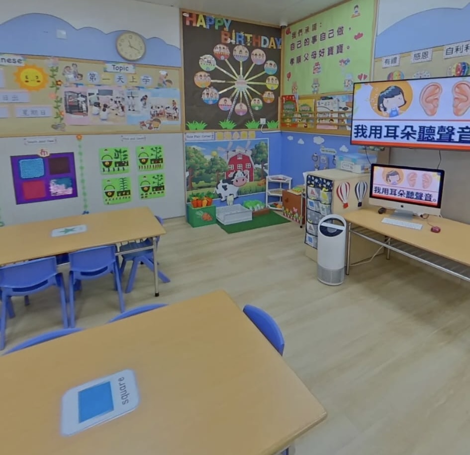 校舍设备:学校注册课室6个,可容纳约318个学生、室内游戏场地、音乐室、图书室、大肌肉活动室。