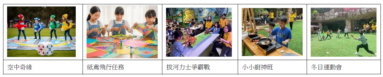 一眾學員齊來一同進行海陸空全方位活動體驗吧!在為期4天的體驗營中,各學員將挑戰紙鳶飛行任務,探索飛行科學原理。化身為飛行棋中的快樂棋子,展開一場滿載趣味的飛一般旅程,在歡笑聲中與眾學員建立彼此友誼。動手打造小方舟,展開水上大冒險,克服不同挑戰。活學活用STEAM原理,組裝拔河機械人,進行激烈角力賽,促進團隊合作精神!還可一起變身小廚神,製作甜蜜又健康的冬日窩心小食;更會挑戰繩網關卡,並參與各種運動競技大比拼,鍛鍊無比意志!讓一眾學員透過寓教於樂的多元學習體驗,全方位得到成長!
